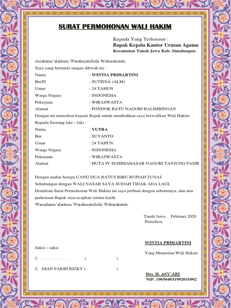 - Wali hakim hanya terhad kepada kategori berikut iaitu. Dalam bentuknya jika disebutkan secara lisan pernyataan sulit untuk dapat. Foto copy surat nikah orang tua.
