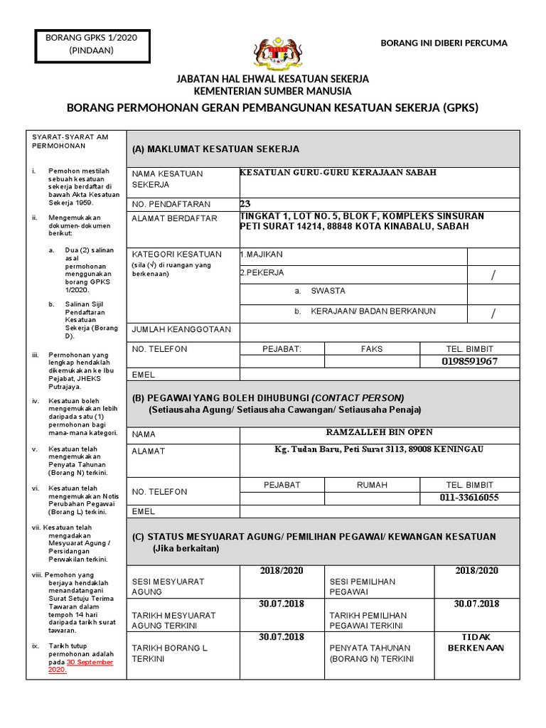 Bayaran minimum ialah RM18000 dan maksima sebanyak. Maklumat Statistik Kesatuan Sekerja. Borang Akaun Yang akan diberikan oleh Bendahari Atau Pegawai Lain Yang Bertanggungjawab Bagi Akaun-Akaun Sesuatu Kesatuan Sekerja.