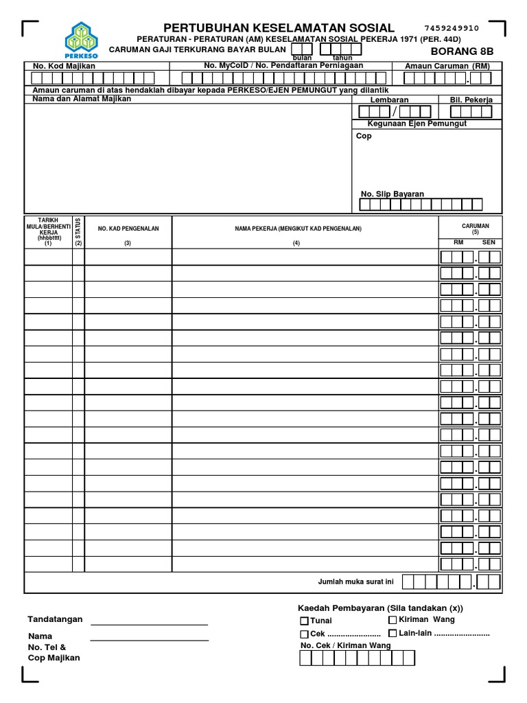 Socso social security organization perkeso nbc com my. Complete all necessary information in the required fillable areas. Slip Bayaran Bank dan salinan Borang 8A perlu disimpan oleh majikan bagi tujuan rekod.